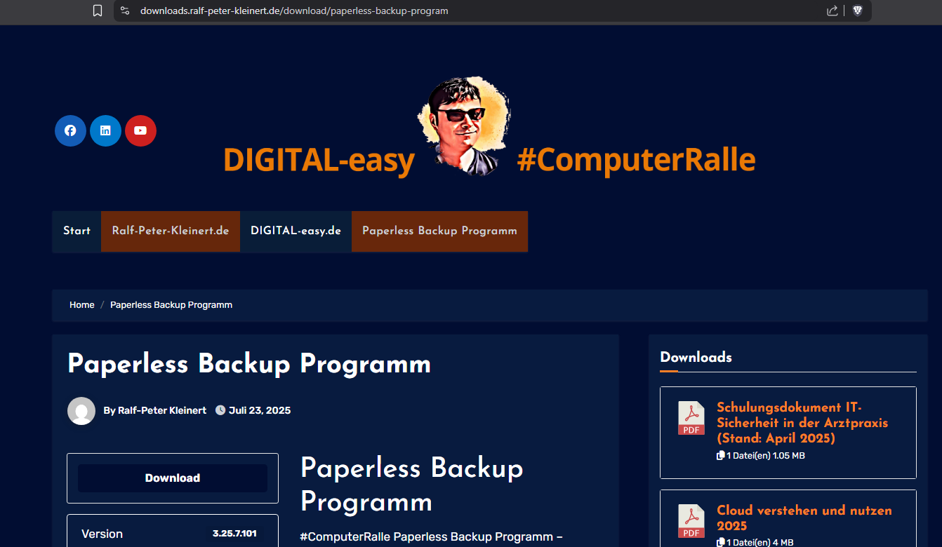 Laden Sie das kostenlose Paperless Backup Programm hier von meiner Downloadseite herunter: https://downloads.ralf-peter-kleinert.de/download/paperless-backup-program